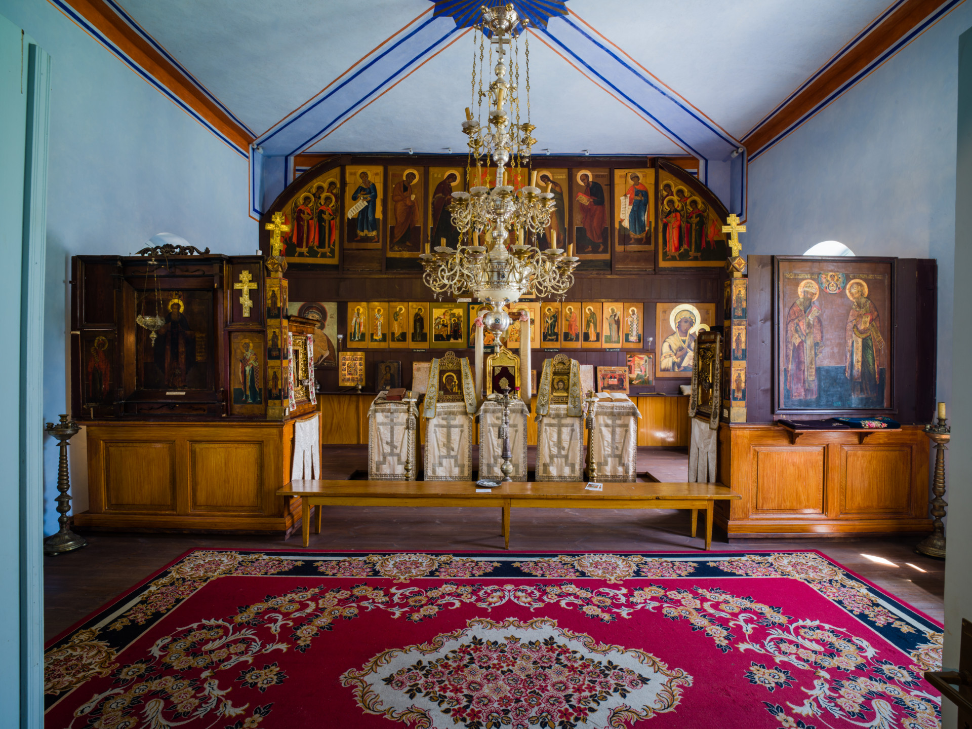 Staroobrzędowcy, zwani także filiponami, nie uznali w XVII w. reform patriarchy Nikona wprowadzonych w Rosyjskim Kościele Prawosławnym. Prześladowani za swoje przekonania religijne, zmuszeni byli emigrować. Pierwsi staroobrzędowcy przybyli na Mazury w latach dwudziestych XIX w., początkowo z ziemi suwalsko-sejneńskiej, później również z głębi Rosji. Dzieje mazurskich staroobrzędowców są ściśle powiązane z klasztorem wojnowskim. Początki klasztoru sięgają 1836 r, . kiedy to starzec Ławrientij Rastropin (1762-1851) założył nad brzegiem jeziora Duś małą pustelnię. W 1847 r. przekształcono ją w klasztor, którego pierwszym igumenem (przeorem) został Michaił Chawronin, a w 1849 r. klasztor staje się filią słynnego ośrodka staroobrzędowego w Moskwie, zwanego Cmentarzem Prieobrażenskim. W wyniku zaostrzających się w Rosji represji wobec staroobrzędowców klasztor wojnowski stał się schronienieniem dla wielu prześladowanych. Największy rozkwit klasztoru przypada na lata 1852-1867, gdy igumenem był Paweł Pruski (Pieter Iwanowicz Ledniew, 1821-1895). Z jego inicjatywy zostaje założona drukarnia w pobliskim Piszu. W 1867 r. Paweł opuszcza Mazury, udaje się do Rosji i przechodzi na jednowierstwo, podporządkowane hierarhii Kościoła prawosławnego.